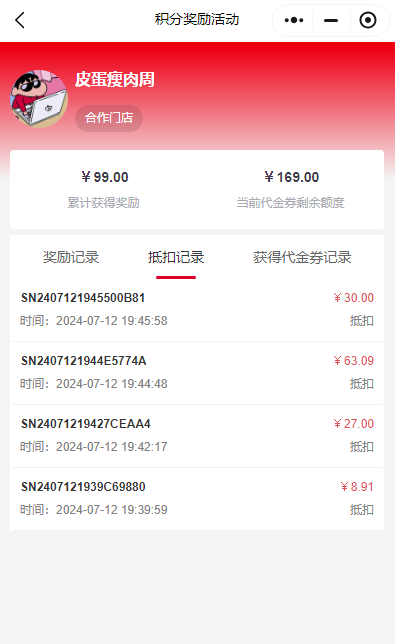 三、会员获得代金券额度后购买商品时默认使用代金券抵扣,代金券额度抵扣完后会员获得奖励