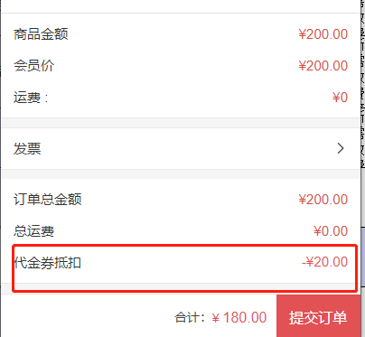 1,会员有代金券时,商品下单会默认使用代金券抵扣,抵扣金额=商品会员折扣后金额x抵扣比例